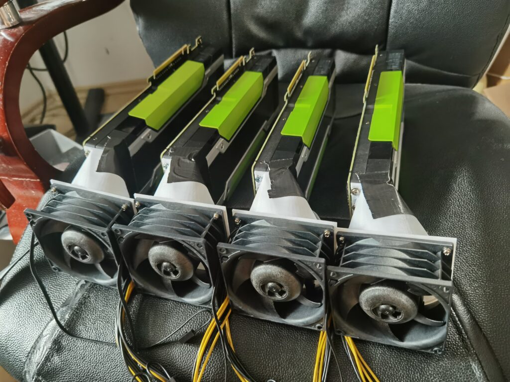 - Adapter: 3D-gedruckte Adapter (Thingiverse-Link) wurden zur Montage von Lüftern direkt an den K80-Kühlkörpern verwendet.