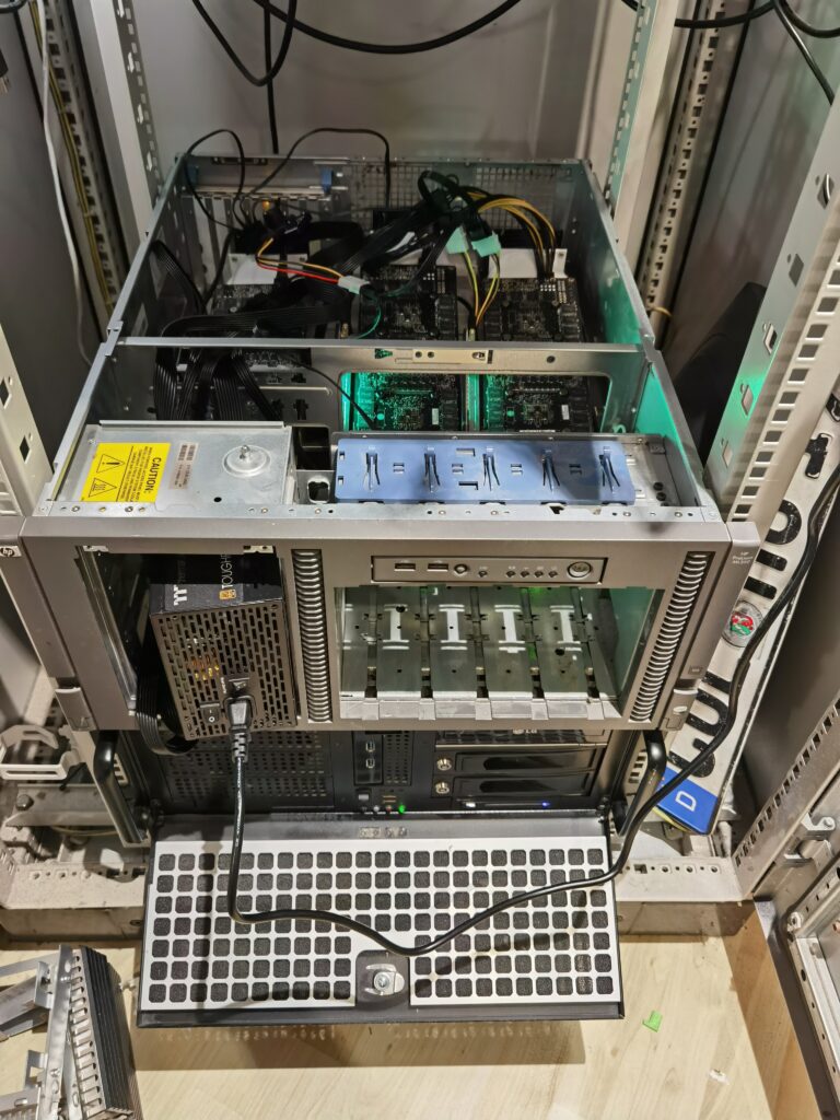 Insgesamt wurden fünf NVIDIA Tesla K80 Karten beschafft (vier über eBay und eine zusätzliche über Amazon), um die Kapazitätsziele des Projekts zu erreichen. Aufgrund der limitierten PCIe-Slots und der unzureichenden PCIe-Lanes des verwendeten B450-Chipsatzes konnten aktuell jedoch nur vier Karten in das System integriert werden, was die nutzbare Kapazität auf 90 GiB VRAM begrenzt.